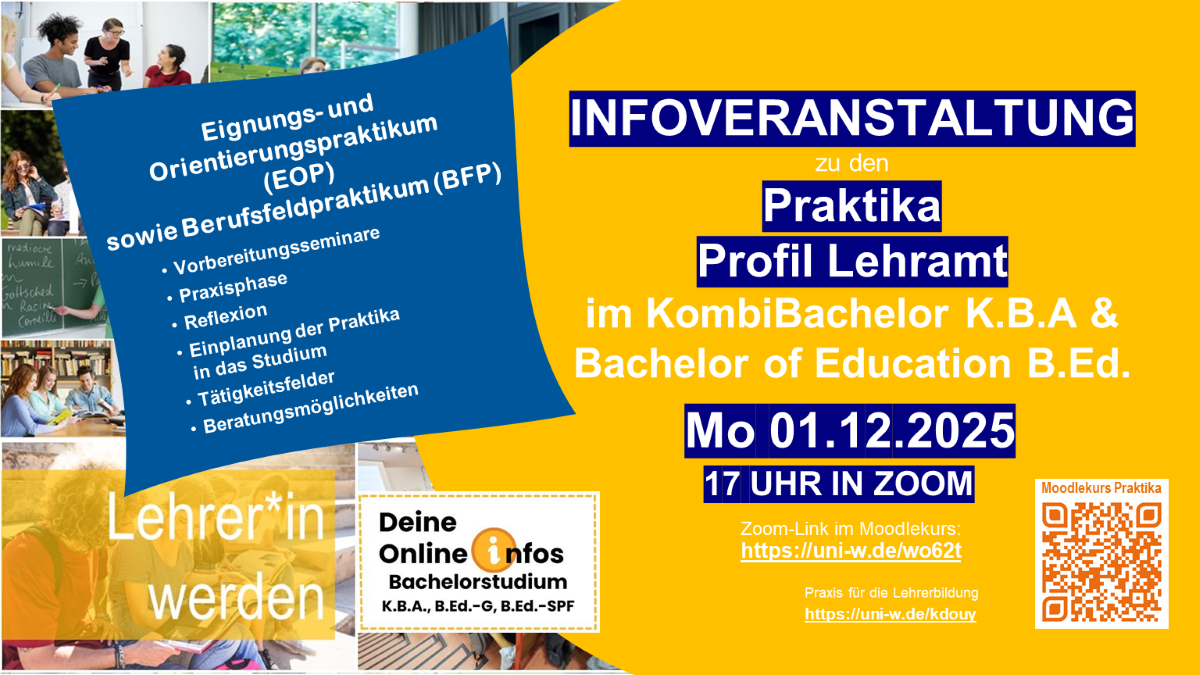 Mo 1.12.2025 um 17 Uhr: Infoveranstaltung zu den Praktika im Bachelor Profil Lehramt