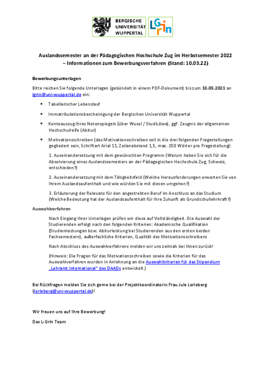 Das Sekretariat von Frau Prof. Dr. Schuchart ist vom 23.08.2013 bis 12.09.2013 geschlossen. E-mails werden nicht weitergeleitet. In dringenden Fällen wenden Sie sich bitte von 9:00 bis 14:00 Uhr an Frau Ulrike Gürtzgen, guertzgen (at) uni-wuppertal.de