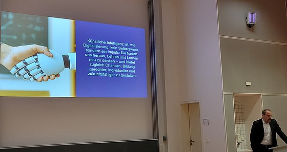 In seinem spannenden Vortrag zum Thema ‚Was kann KI und was nicht? – Ein Realitätscheck für Schule, Studium und Unterrichtspraxis‘ schlug Herr Prof. Dr.-Ing. Tobias Meisen einen weiten Bogen von der Digitalisierung des Alltags über generative KI hin zu den Chancen, die KI für Lehren und Lernen sowie gerechtere Bildung bieten kann.