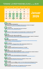 Monatliche Übersicht Termine Lehrer*innenbildung an der BUW - z.B. Infoveranstaltungen zum M.Ed., den Bachelorstudiengängen, Praxis Lehrer*innenbildung, LehramtPlus und sonstige interessante Veranstaltungen.