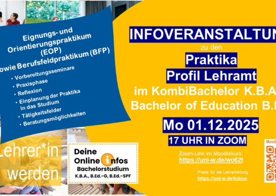 Mo 1.12.2025 um 17 Uhr: Infoveranstaltung zu den Praktika im Bachelor Profil Lehramt